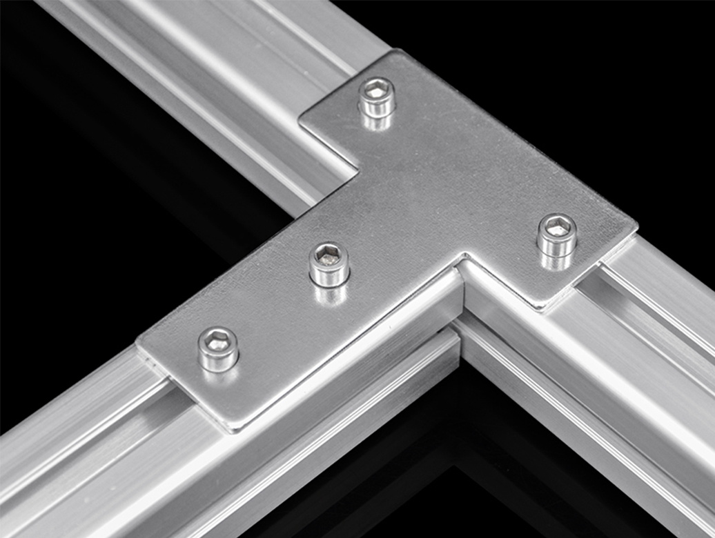 材料: 碳钢(表面镀锌) Metarial:Galvanized Steel 用途:用于型材切45°角,作90°连接无需作打孔,攻丝等加工,将其置于型材槽坑内锁紧紧顶螺栓即可,安装方便,不影响外观及其安装。